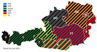 | Landesregierungen in Österreich, Juni 2013 | Eigenes Werk | NordNordWest | Datei:Landesregierungen in Österreich 06-2013.png |