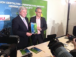 - ↑ Volker Bouffier: Die CDU Hessen bietet BÜNDNIS 90/DIE GRÜNEN Koalitionsverhandlungen an CDU Hessen vom 16. November 2018
