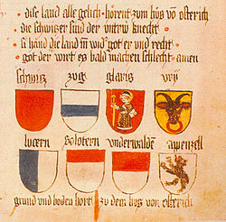 - ↑ Hans Conrad Peyer: Die Entstehung der Eidgenossenschaft. S. 188–191.