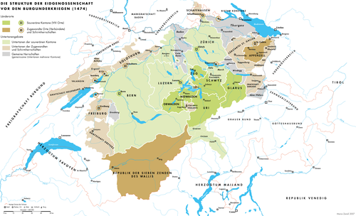 - ↑ Bernhard Stettler: Die Eidgenossenschaft im 15. Jahrhundert. – Die Suche nach einem gemeinsamen Nenner. Ex Libirs Verlag, Zürich 2004