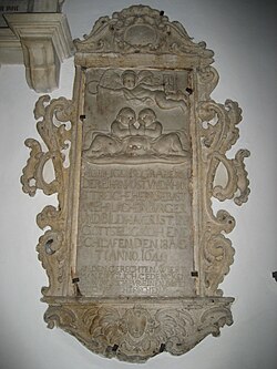 | Stadtpfarrkirche Graz, Grazer Stadtpfarrkirche (Austria): Grab von Sebastian Erlacher; dessen Schüler (unter später Ehemann der Witwe Erlachers) Johann Baptist Vischer war der Vater von Johann Bernhard Fischer von Erlach, der sich nach dem hier Begrabenen "von Erlach" nannte. | Selbst fotografiert | Marion Schneider & Christoph Aistleitner | Datei:Graz Stadtpfarrkirche 12.jpg |