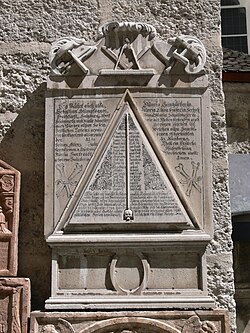 | Petersfriedhof Salzburg Epitaph to the master masons of Sebastian Stumpfegger's family | Selbst fotografiert | Photo: Andreas Praefcke | Datei:Mariazellerkapelle (Petersfriedhof Salzburg) SW wall - Monument 17 Stumpfegger.jpg | |