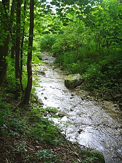 Der Sebastianbach in einem Wald |