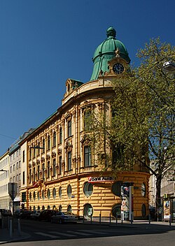 | Das Bankgebäude am Sparkassaplatz 4, Rudolfsheim-Fünfhaus, Wien, wurde 1884 für die lokale Rudolfsheimer Kommunalsparkasse erbaut, die später von der Wiener Zentralsparkasse übernommen wurde. Auffallend ist die Kuppel und die runden Fenster in den unteren beiden Etagen (1970 und 1972 durch Georg Gsteu adaptiert). | Eigenes Werk | Herzi Pinki | Datei:Sparkassaplatz 4, Vienna.jpg | |