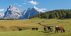 Die Seiser Alm (italienisch Alpe di Siusi, ladinisch Mont Sëuc) ist die größte Hochalm Europas. Sie liegt in den Südtiroler Dolomiten in Italien, rund 20 km nordöstlich von Bozen und oberhalb der bekannten Tourismus-Orte Seis am Schlern, Kastelruth und St. Ulrich in Gröden.
