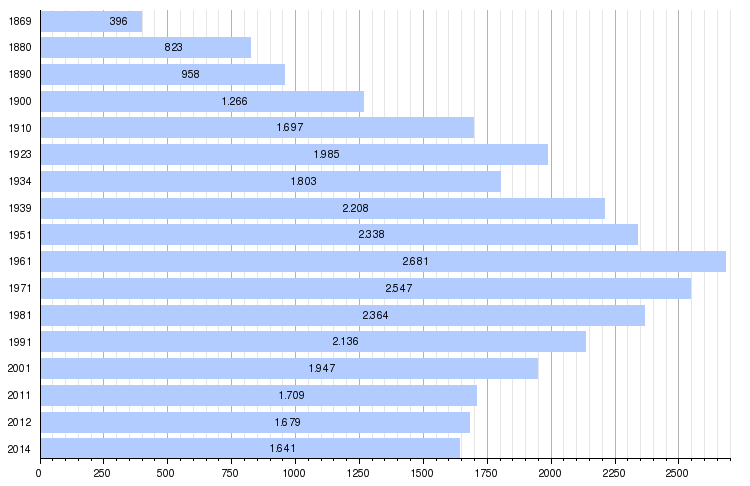 Die Bevölkerungszahl sinkt seit Jahrzehnten wegen einer starken Abwanderung. Seit 2001 ist auch die Geburtenbilanz negativ.[4]
