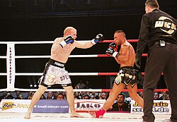 | Kickbox-Weltmeister Semen Poskotin (D) vs. Willy Borrel (F) | Selbst fotografiert | Claus Michelfelder --CM ( Diskussion ) 21:53, 22. Mai 2012 (CEST) | Datei:WKA World Championship 2012 Munich 911.JPG | |