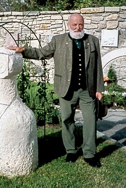 | Klingendes Österreich mit Sepp Forcher in Kaisersteinbruch beim Europasymposium Kaisersteinbruch – Europabrunnen | Diese Datei ist ein Ausschnitt aus einer anderen Datei | Fotografie: Helmuth Furch ( Diskussion ) Ausschnitt: Lewenstein | Datei:Sepp Forcher Europabrunnen II.jpg |