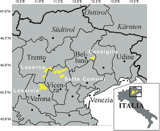 - 1 2 Maria Hornung: Die Sieben Gemeinden in der Provinz Vicenza. In: Südtirol in Wort und Bild. Südtirol Verlag Herbert Neuner, München 1984, S. 25.