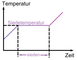 Unterhalb und oberhalb des Siedepunktes führt eine Erwärmung der Flüssigkeit bzw. des Gases nur zu einer Erhöhung der Temperatur. Die zugeführte Energie wird in Bewegungsenergie der Teilchen umgewandelt. Während des Phasenübergangs der Flüssigkeit zum Gas jedoch bleibt die Temperatur konstant, sofern auch der Druck konstant bleibt. Sämtliche zugeführte thermische Energie wird in die Zustandsänderung investiert.