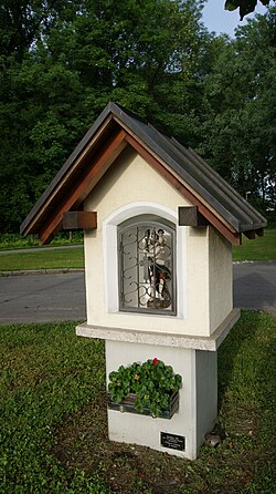 | Bildstock (Heiligenstock, Marterl) im Forach beim Kindergarten in Dornbirn , Vorarlberg , Österreich . | Eigenes Werk | Asurnipal | Datei:Dornbirn-Forach-KG-Marterl-05.JPG | |