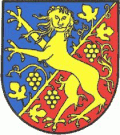 - „In einem von Blau und Rot durch eine goldene Weinrebe mit vier Blättern und drei Trauben schräglinks geteilten Schild ein goldener Löwe mit rückgewendetem, doch herschauendem Haupt.“ [5]