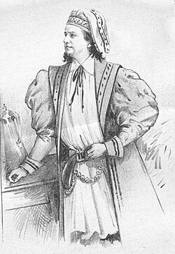 | Portrait of Siegmund Natzler (1862-1913), Austrian actor. Cropped from a gallery of actors of Carltheater in Vienna who performed "Die Lachttaube" composed by Eugen von Taund. | Der Humorist, 20 April 1895 , digitized by Austrian National Library | Jan Vilímek | Datei:Siegmund Natzler 1895 Vilimek.jpg |