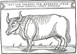| Auerochse | pl.wiki, uploaded by user:Dixi @Oct.4 2004 | Sigismund von Herberstein | Datei:Tur ZHerberstein pol XVIw small.jpg | |