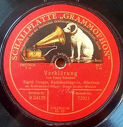 | Schallplatte von Sigrid Onegin | Eigenes Werk | Zylberglajs | Datei:Onegin, Sigrid.jpg | |