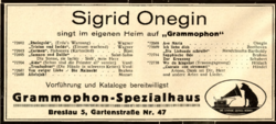 | Sigrid Onegin Grammophon 1925 | https://sbc.org.pl/Content/323346/iv781955-1925-28-0001.pdf Schlesische Theater- und Musikwoche, 9. September 1925 | Autor/-in unbekannt Unknown author | Datei:Sigrid Onegin Grammophon 1925.png | |