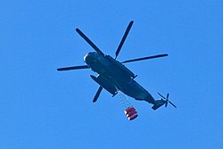 | Eine Sikorsky CH 53 der Bundeswehr im zivilen Einsatz bei einer Übung mit einem Löschbehälter unten angehängt | Lukas Felder | Lukas Felder | Datei:CH53Loescheinsatz.jpg | |