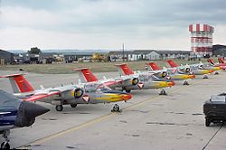 | Heads the line of the Karo AS team seen appearing at IAT 76. Also visable is 1155/E, 1136/F, 1137/G, 1138/H and 1140/J. | Gallery page http://www.airliners.net/photo/Austria---Air/Saab-105OE/1840467/L Photo http://cdn-www.airliners.net/aviation-photos/photos/7/6/4/1840467.jpg | Mike Freer - Touchdown-aviation | Datei:Saab 105OE, Austria - Air Force AN1840467.jpg |