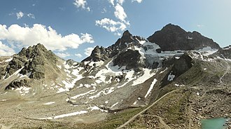| 395°-Panorama der Silvretta in den österreichischen Alpen. Standort: Ochsenkopf. Links das Ochsental, der Tiroler Kopf, in der Mitte das Jamtal, im Hintergrund die Fluchthörner, rechts der Vermuntgletscher mit dem Piz Buin . Aus 12 Einzelbildern mit großer Überlappung zusammengesetzt. Eine beschriftete Version gibt es hier . | M. Klüber Fotografie | Mg-k | Datei:Silvretta Panorama wiki mg-k.jpg | |
