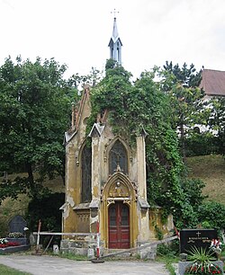 Am Fuß des Kirchberges befindet sich die 1869 errichtete, neugotische Grabkapelle der Familie Rinnböck. Josef Rinnböck war im 19. Jahrhundert Simmeringer Gemeinderat und gründete die so genannten Rinnböckhäuser, die zwischen dem Beginn der Simmeringer Hauptstraße und der ebenfalls nach ihm benannten Rinnböckstraße liegen. Seit 1999 befindet sich die Kapelle im Eigentum der Stadt Wien, von 2011 bis 2012 wurde sie saniert.[2] Seither ist das Erdgeschoß der Kapelle mit dem Altar erstmals für die Öffentlichkeit zugänglich.[3]