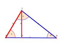Mit der Definition des Sinus können auch im nicht rechtwinkligen Dreieck Größen, speziell die Höhen, berechnet werden; ein Beispiel ist die Berechnung von im Dreieck ABC bei gegebener Länge und Winkel :