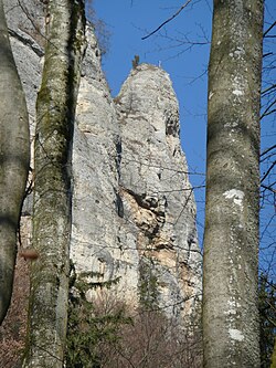 Eine von fünf Felsnischen auf dem Waldweg unter dem Skarbin
