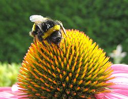 | A bumblebee on a Echinacea purpurea with pollen. The white and yellow dots are pollen. | Eigenes Werk | Johan | Datei:Bumblebee-Echinacea-Pollen.jpg | |
