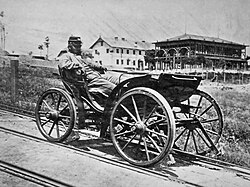 | Die Umlauf-Standseilbahn auf die w:de:Sophienalpe ("Knöpferlbahn"), die als Versuchsstrecke von dem Fabrikanten Georg Sigl finanziert wurde. Errichtet 1872-1874 bis zur der Einstellung des Betriebs im Jahr 1881. Im Hintergrund erkennbar das weiße Gebäude "Gasthaus auf der Sophienalpe" welches im Jahr 2016 in Betrieb ist. Rechts davor der Glaspavillon welcher im Zuge der w:de:Weltausstellung 1873 in Wien verwendet wurde und später abgerissen wurde. | Der öffentliche Verkehr in der Stadt Wien - Folge 1 | Michael Frankenstein | Datei:Standseilbahn sophienalpe 1873.jpg | |