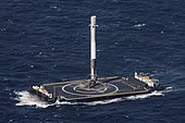 | First stage of the SpaceX Falcon 9 rocket successfully landing on the commissioned Autonomous Spaceport Drone Ship for the first time on April 9. The mission, CRS-8, also launched the Dragon spacecraft to orbit. | CRS-8 first stage landing | SpaceX Photos | Datei:CRS-8 first stage landing (25787998624).jpg | |