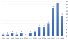 Bereits 2017 löste SpaceX Arianespace als weltweiten Marktführer für kommerzielle Satellitenstarts ab.[60] Seitdem konnte das Unternehmen seinen Marktanteil weiter ausbauen.