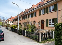 1921 bis 1923 erfolgte der Bau von 35 Eisenbahnerhäusern und 35 Posthäusern im Sierenmoos[7]. Die Dreizimmerhäuser boten 76 m², die Vierzimmerhäuser 84 m² Wohnfläche (plus ein Mansarden- und ein Badezimmer). Zu jedem Haus gehörte ein Garten von 200 bis 500 m². Weitere Wohnungen entstanden in der Luisen- und der Allmannsdorferstraße sowie im Paradies in der Gottlieberstraße, am Friedrich-Pecht-Weg und in der Turnierstraße.