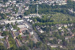 | Solingen; Schlagbaumer Straße mit Fernmeldeturm Solingen | Eigenes Werk | Krd | Datei:Luftbild Solingen, Fernmeldeturm.jpg | |