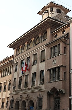 - ↑ Für die Bank und für die Stadt. 100 Jahre Südtiroler Sparkasse in der Bozner Sparkassenstraße (1907–2007). Südtiroler Sparkasse AG, Bozen 2007, S. 87.