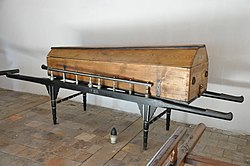 | Jospehinischer Gemeindesarg (Klappsarg) aus Renhardsweiler, 2. Hälfte 18. Jahrhundert, Stadtmuseum Bad Saulgau | Eigenes Werk | User:WolfD59 | Datei:Josephinischer Holzsarg 02 Saulgau Stadtmuseum.jpg | |