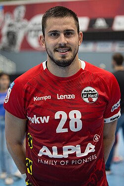 | Der bosnische Handballspieler Srđan Predragović nach dem HLA-Spiel Hard vs Ferlach am 7. September 2022. | Eigenes Werk | Xplvl | Datei:Srđan Predragović 07092022.jpg |