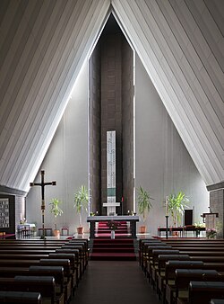 | Nordostansicht der Pfarrkirche St. Hemma im 13. Wiener Gemeindebezirk Hietzing . Die Kirche wurde nach Plänen von de:Erwin Plevan errichtet. Die Grundsteinlegung fand am 2. Okt. 1964 statt und die Einweihung am 25. Sep. 1966. Mit 1. Jänner 1967 wurde die Pfarre von der Invalidenhauskirche an die neue Kirche verlegt. Aus der Pfarre St. Johann am Fasangarten wurde die Pfarre St. Hemma. | Eigenes Werk | C.Stadler/Bwag | Datei:Hietzing (Wien) - Kirche St. Hemma von Gurk.JPG | |