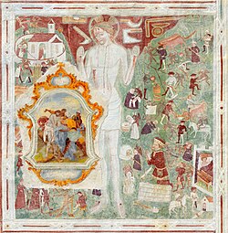 | Diese Datei zeigt das Baudenkmal mit der Nummer 17126 in Südtirol. | Eigenes Werk | This Photo was taken by Wolfgang Moroder . Feel free to use my photos, but please mention me as the author and send me a message . Dieses Bild ist nicht gemeinfrei . Dies bedeutet, dass es u. a. Urheberrechtsschutz genießt. Es darf nur nach den hier genannten Regeln (oder mit ausdrücklicher Genehmigung des Urhebers) genutzt werden. Dies schließt insbesondere eine Verwendung in sozialen Netzwerken aus , deren Nutzungsbedingungen der hier aufgeführten Lizenz nicht entsprechen. Bitte lade an dieser Stelle keine auch nur minimal veränderte Fassung ohne Rücksprache mit dem Urheber hoch. Der Urheber möchte Korrekturen nur an der ihm vorliegenden unkomprimierten Quelle vornehmen. So ist gewährleistet, dass die Änderungen erhalten bleiben und dass keine unnötigen Kompressionsartefakte entstehen. Wenn du meinst, dass Änderungen erforderlich sein sollten, informiere bitte den Urheber oder lade eine Bearbeitung als neues Bild unter neuem Namen und unter Verwendung der Vorlage Derivat bzw. der Vorlage Extrakt hoch. | Datei:Fresco SAcun.jpg |