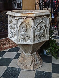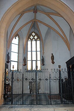 Die einjochige Kapelle im nördlichen Chorschluss hat ein Sterngewölbe mit Schlussstein und wird heute als Taufkapelle verwendet. Der achtseitige Taufstein vom Anfang des 16. Jahrhunderts zeigt Tartschen am Fuß und Apostelreliefs unter Kielbogen am Becken. Der Deckel stammt aus späterer Zeit.