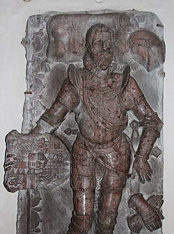 - Daneben ist die Wappengrabplatte des Franz Leininger aus dem Jahre 1539 angebracht.