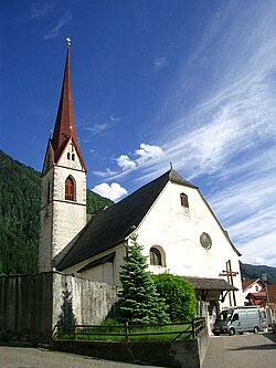- Von der ursprünglichen romanischen Pfarrkirche St. Leonhard steht nur noch der untere Teil des Turms. An seiner Ostseite ist noch Bauplastik aus dieser Zeit (ein Dämonenkopf) zu erkennen. Der heutige Bau ist gotisch mit zweischiffigem Langhaus, Spitzbogenfenstern, Kreuzgewölben und polygonalem Chor. Im 18. Jahrhundert wurde das Innere barockisiert. Ein spätgotischer Flügelaltar von Hans Klocker, das kunsthistorisch wertvollste Ausstattungsstück, wurde entfernt, seine Skulpturen verstreut und durch Werke der Passeirer Malerschule der Nachbargemeinde St. Martin und ihrer Zeitgenossen aus anderen Gebieten Tirols ersetzt. Hochaltar und Kanzel stammen aus dem 19. Jahrhundert. Erhalten aus der gotischen Zeit sind die floralen Gewölbedekorationen im Chor (1583) sowie ein Taufstein (datiert 1545) mit Passeirer Wappen.