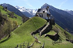 - zum anderen die Hofer-Gedächtniskapelle, eine Gedenkkapelle von 1883/84, ein neoromanischer Kreuzkuppelbau aus Granit mit Historiengemälden von Edmund von Wörndle, Szenen aus dem Leben Andreas Hofers darstellend[5][6]