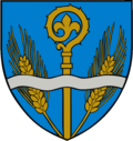 Der Gemeinde wurde 1979 folgendes Wappen verliehen: In einem blauen Schild ein von zwei goldenen Ähren begleiteter Bischofstab, überdeckt von einem silbernen Wellenbalken.
