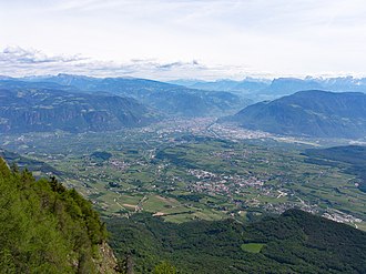 | Blick vom Penegal nach Bozen , im Mittelgrund Eppan , St. Michael, Girlan. | Eigenes Werk | Hubert Berberich ( HubiB ) | Datei:PenegalViewToBozen.jpg |