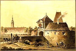| Wienertor, St. Pölten, before 1887 | Stadt im besten Alter. 850 Jahre Stadt St. Pölten. 2009 | Autor/-in unbekannt Unknown author | Datei:Wienertor vor 1887.jpg |