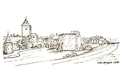Die Stadtmauer bestand aus einer dickeren inneren Mauer, daran anschließend einem Zwinger von etwa 4 m Breite, danach einer dünneren äußeren Mauer, schließlich einem etwa 16 m breiten Stadtgraben und ganz außen, einer weiteren Mauer. Die inneren Maueranlagen war mit etlichen mehrstöckigen und befestigten Wehrtürmen versehen und besaßen drei große Stadttore samt Vorbauten.