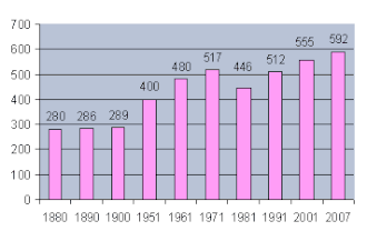 Seit Anfang des 20. Jahrhunderts hat sich die Einwohnerzahl mehr als verdoppelt. Das Dorf wächst vor allem seit den 1980er Jahren.