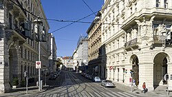| Stadiongasse in Wien 1 bei der Reichsratsstraße Richtung Westen | Eigenes Werk | Gugerell | Datei:Wien 01 Stadiongasse a.jpg |