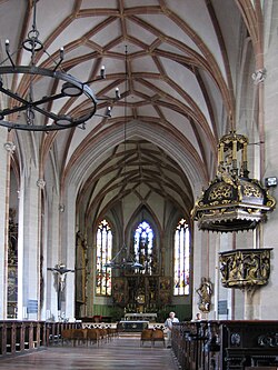 | Braunau am Inn , Inneres der Stadtpfarrkirche St. Stephan gegen Osten mit der barocken Kanzel (1700) und dem neugotischen Hochaltar von Georg Schreiner (1904) | Eigenes Werk | Aconcagua | Datei:Braunau am Inn Kirche 2.jpg | |