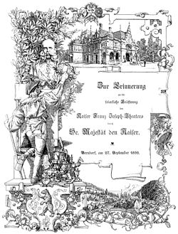 | Theaterzettel für die erste Theateraufführung im Stadttheater Berndorf, Niederösterreich, am Kaisertag (1899-09-27), als Kaiser Franz Joseph das Kaiser-Franz-Joseph-Theater eröffnete. | Scan from Helene Schießl, Erwin Schindler: Berndorfer Gemeindechronik, herausgegeben aus Anlass 100 Jahre Stadt Berndorf , page 92 | Autor/-in unbekannt Unknown author | Datei:StadttheaterBerndorf Theaterzettel (1899).jpg | |