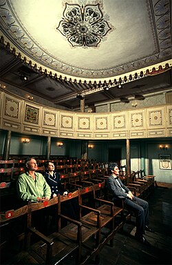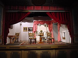 Musste ein Theaterbesucher auf die Toilette, so zog er sich hinter einem Vorhang in eine seitliche Nische zurück und konnte auch von diesem Ort die Handlung auf der Bühne weiter verfolgen. Das Original des Toilettenvorhanges hängt heute noch im Theater.[10]